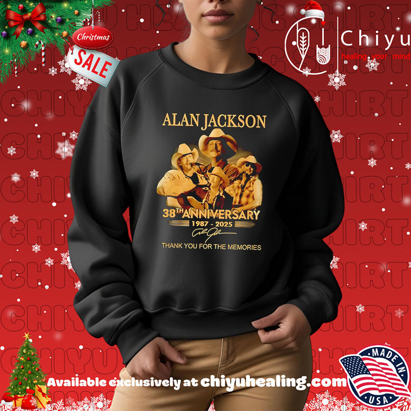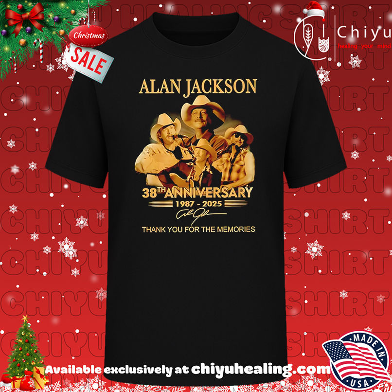 This item: Alan Jackson 38th Anniversary 1987-2025 Thank You For The Memories shirt, Hoodie, Sweatshirt, Poster Canvas, Mug, Ornaments Original price was: $29.99.Current price is: $19.99. SAVE 33% Original price was: $29.99.Current price is: $19.99. SAVE 33%
