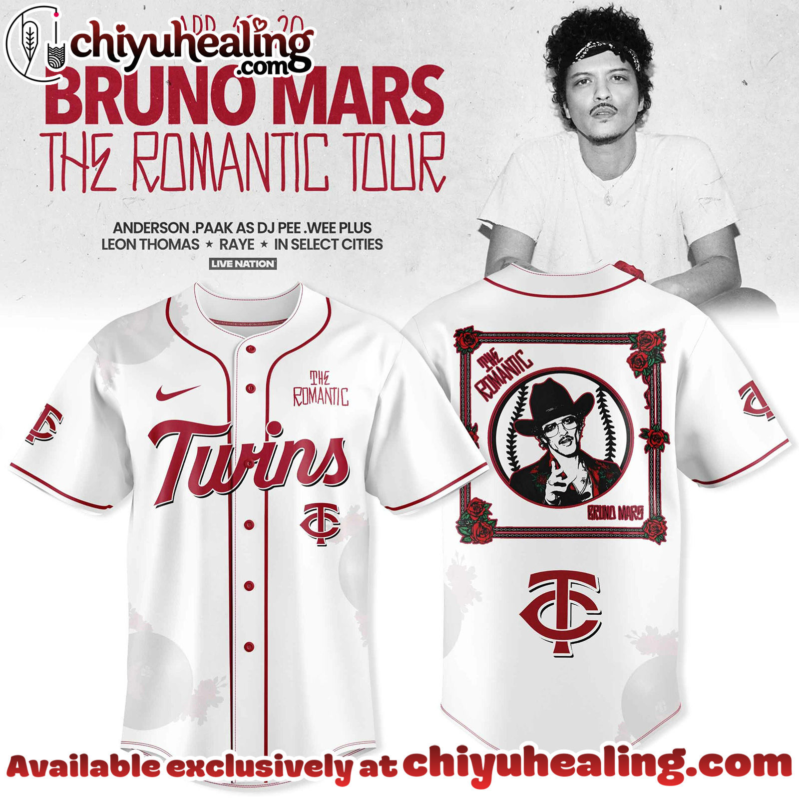 Discover the unique All Team MLB Minnesota Twins x Bruno Mars – The Romantic Tour 2026 Jersey Collection