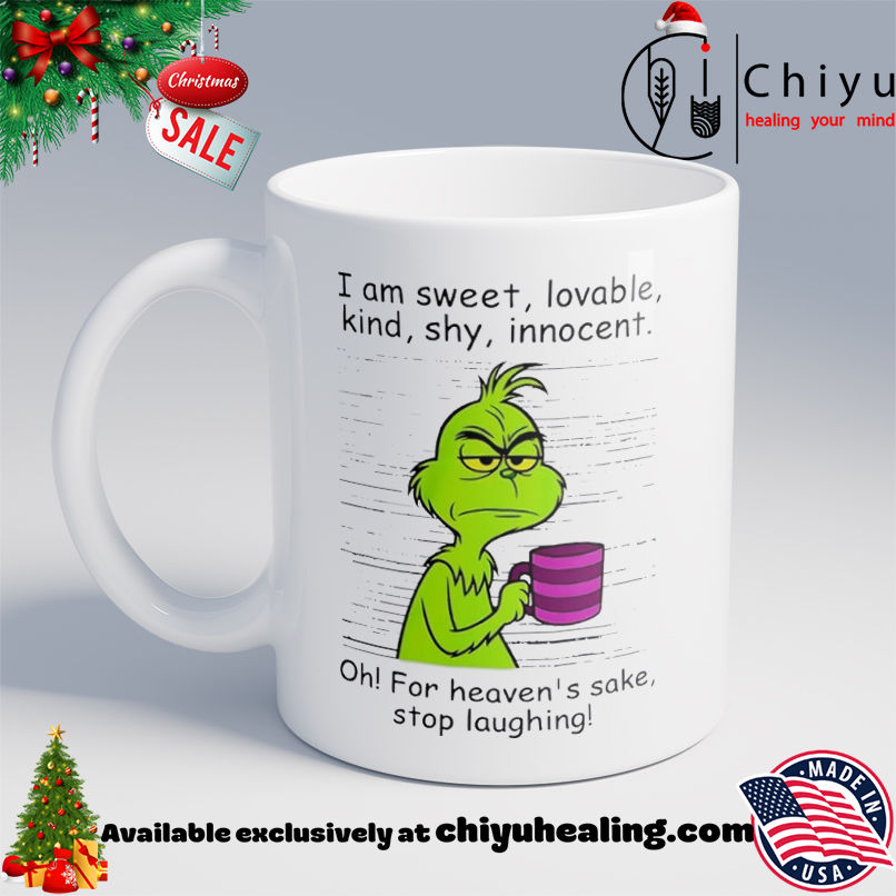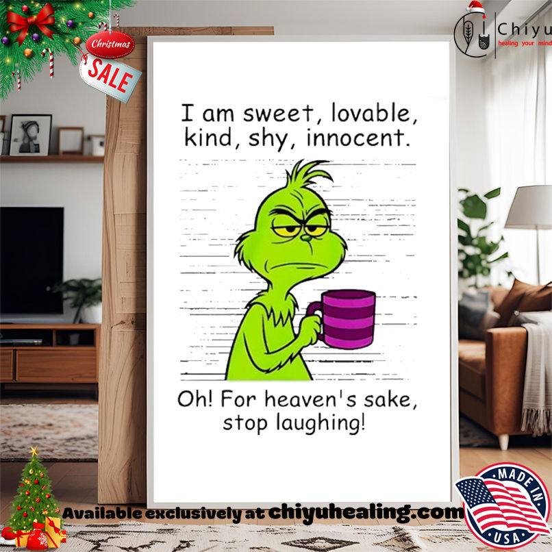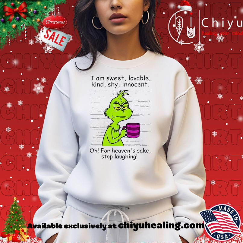 This item: Grinch I am sweet lovable kind shy innocent oh for heavens sake stop laughing T-shirt, Hoodie, Sweatshirt, Poster Canvas, Mug, Ornaments Original price was: $29.99.Current price is: $22.99. SAVE 23% Original price was: $29.99.Current price is: $22.99. SAVE 23%