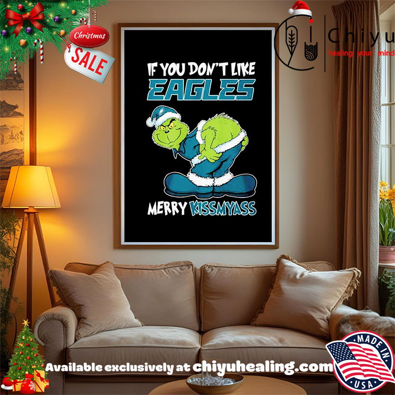 This item: Grinch if you don't like Eagles Merry Kissmyass shirt, Hoodie, Sweatshirt, Poster Canvas, Mug, Ornaments Original price was: $29.99.Current price is: $19.99. SAVE 33% Original price was: $29.99.Current price is: $19.99. SAVE 33%