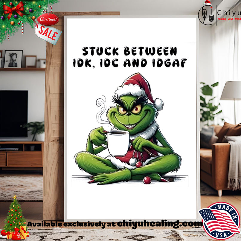Grinch Stuck Between IDK IDC And IDGAF Christmas T-shirt, Hoodie, Sweatshirt, Poster Canvas, Mug, Ornaments