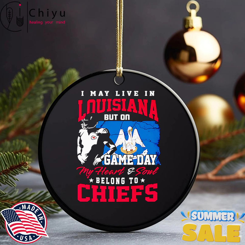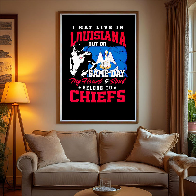 I may live in Louisiana but on game day my heart and soul belong to Chiefs shirt, Hoodie, Sweatshirt, Poster Canvas, Mug, Ornaments