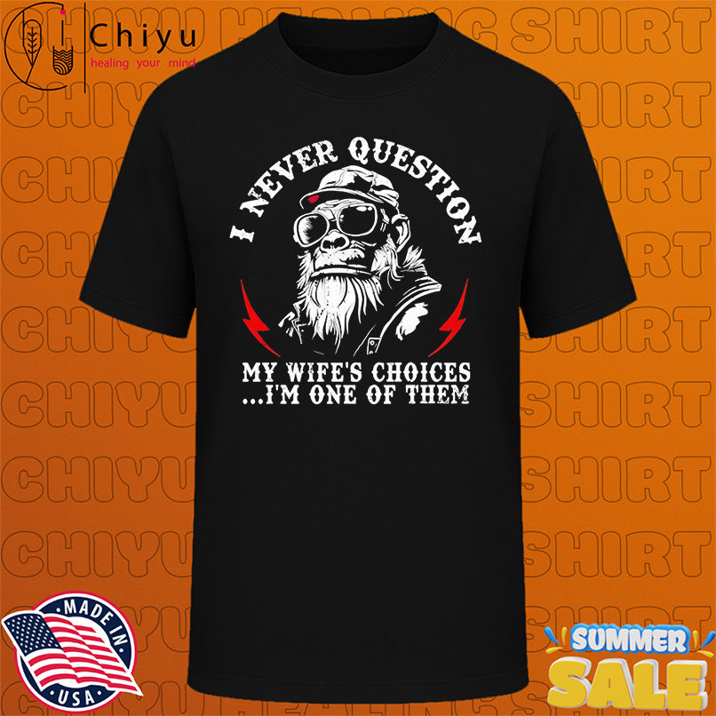 - Fast Delivery: Get your I Never Question My Wife’s Choices I’m One Of Them Monkey shirt delivered quickly with our express shipping service.