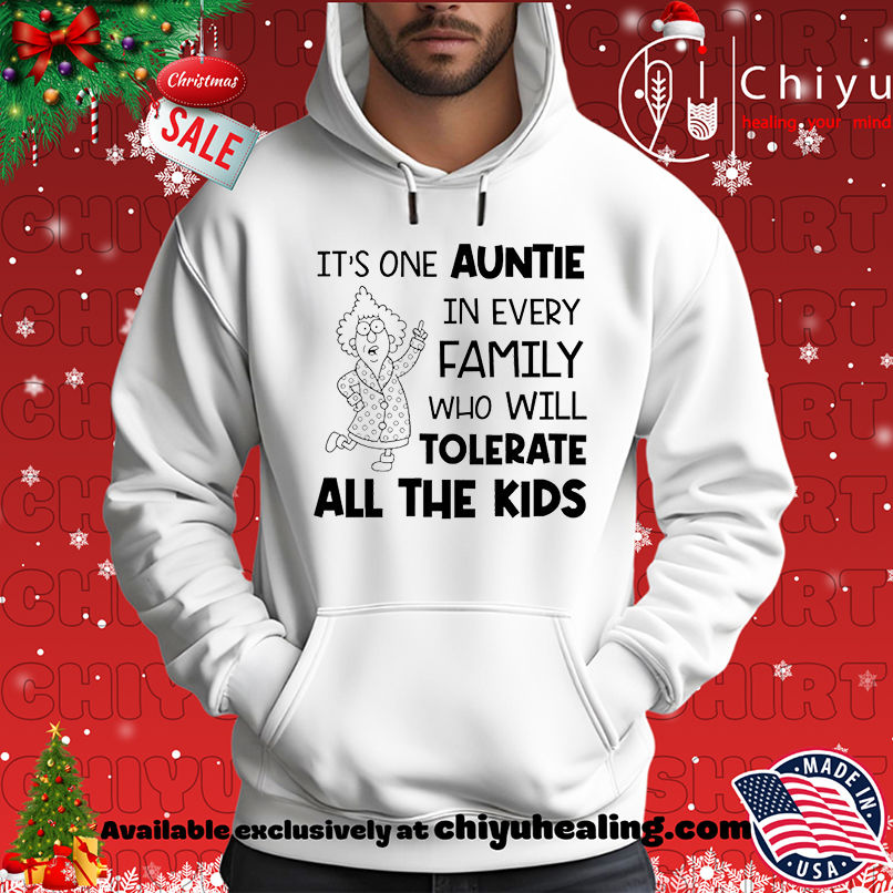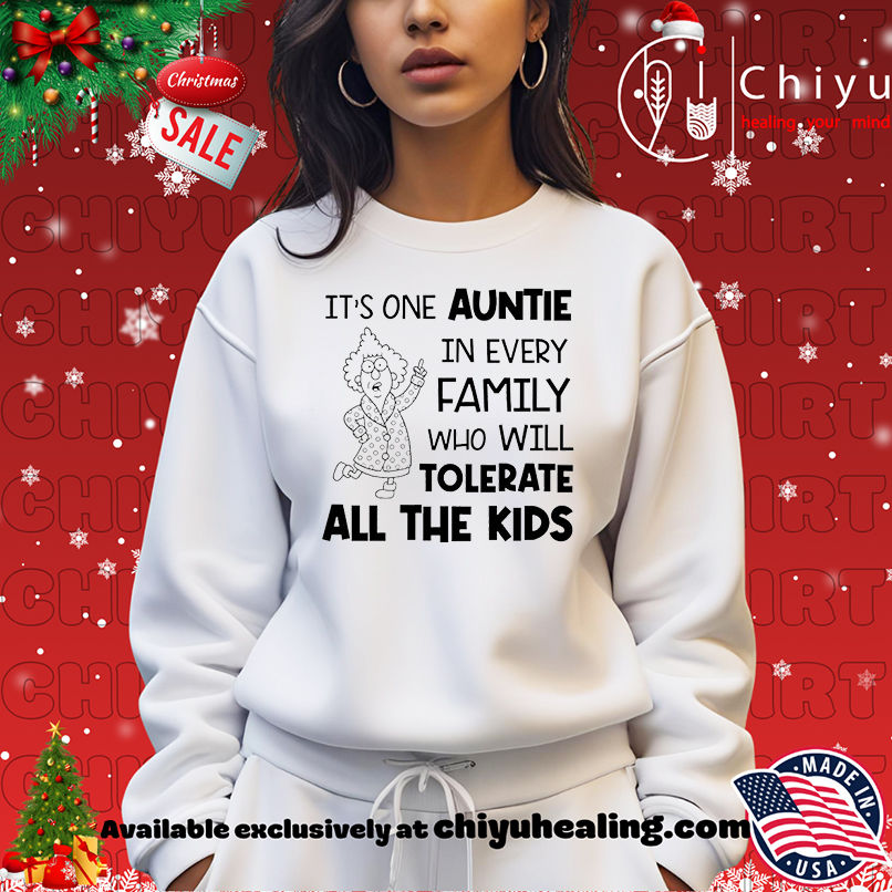 This unique “It’s one auntie in every family who will tolerate all the kids” shirt is designed for the aunt who is always ready with a hug, a story, or a helping hand, no matter how wild the situation gets. It’s a humorous yet heartfelt nod to the unsung heroes of family life. Made from soft, durable material, this shirt is perfect for casual wear, family reunions, or any occasion where you want to showcase your appreciation for that one-of-a-kind aunt. Don’t miss out on the chance to own this conversation-starting apparel. Click to buy now and give a gift that truly says, “We love you, Auntie!” or treat yourself to a reminder of your own legendary patience.