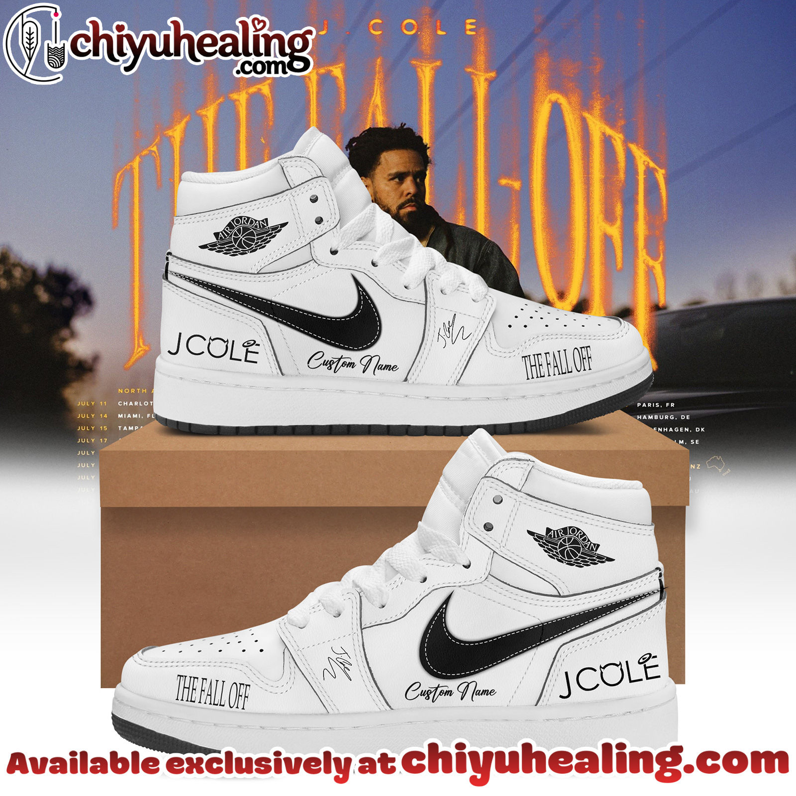 ⚡ Get your J Cole – The Fall-Off World Tour Signed Shoes Air Jordan 1 – Ver 3 Air Jordan 1 POD today and take your sneaker game to the next level! 👟🔥