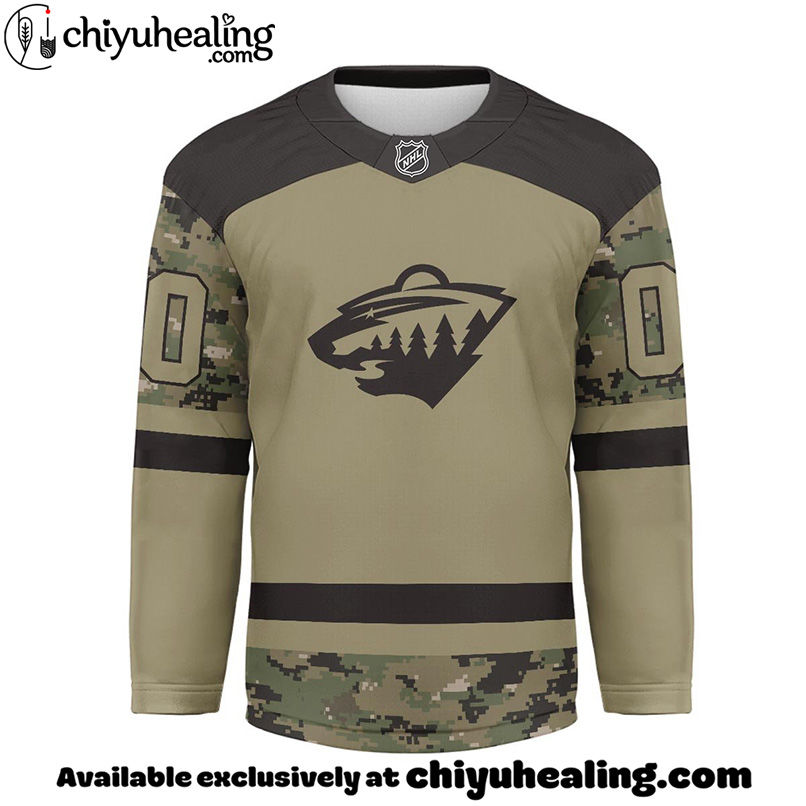 Show Your Support for the Minnesota Wild with this Premium NHL Camo Army Hockey Jersey!