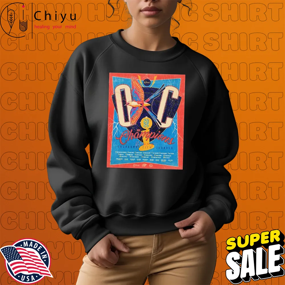 Celebrate the Oklahoma City Thunder’s historic victory in the **2025 NBA Finals** with the exclusive **Oklahoma City Thunder x Scissor-Tailed Flycatcher 2025 NBA Finals Champions T-shirts**. Featuring a unique collaboration with the Scissor-Tailed Flycatcher, Oklahoma’s state bird, this T-shirt is the ultimate way to show your pride as a Thunder fan. With its commemorative design, this shirt celebrates both the team’s achievement and the state’s rich natural heritage. Don’t miss the chance to own a piece of history—this T-shirt is a must-have for any true Thunder supporter!