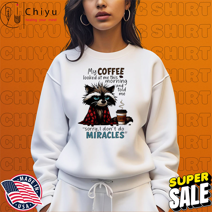 This item: Raccoon my coffee looked at me this morning and told me shirt, Hoodie, Sweatshirt, Poster Canvas, Mug, Ornaments Original price was: $29.97.Current price is: $19.97. SAVE 33% Original price was: $29.97.Current price is: $19.97. SAVE 33%